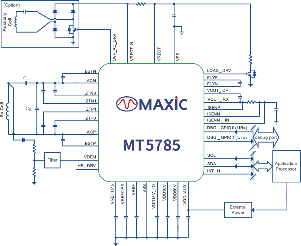 美芯晟最新推出MT5785,是一款基于磁感應(yīng)的SoC高集成無線充電接收芯片,集成了無線充電接收功能所需的一切,正向充電功率高達(dá)100W,同時具有Tx發(fā)射功能,反向充電功率18W。該芯片具有高功率、高性能、高集成度等特點,在國內(nèi)外均屬于高端芯片,已在榮耀Magic 4 Pro/至臻系列等最新推出的旗艦手機(jī)上成功實現(xiàn)量產(chǎn)。