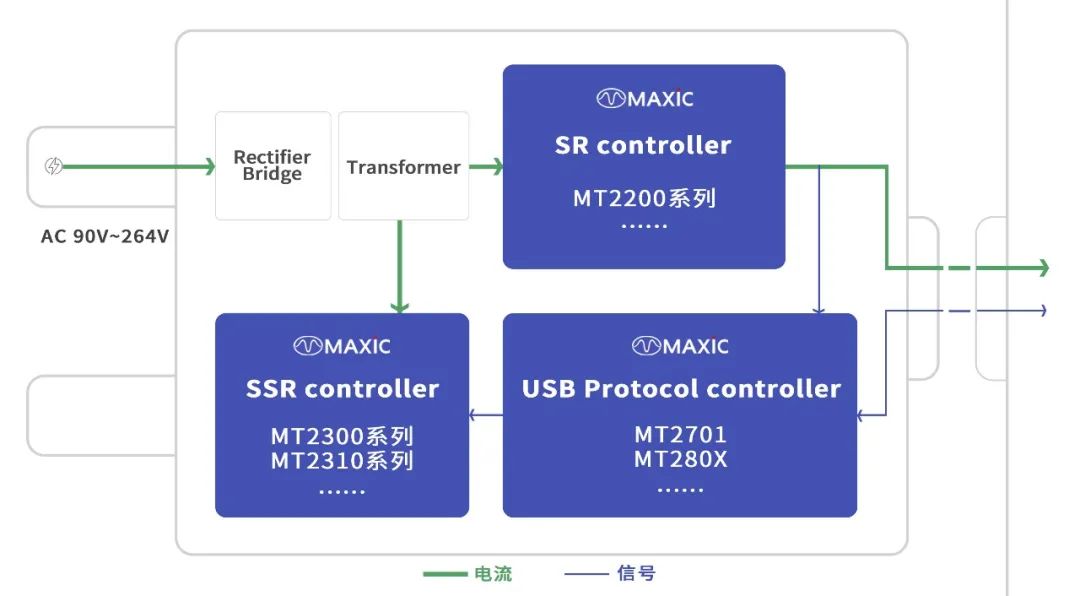 美芯晟快充整體方案既可驅(qū)動傳統(tǒng)Si MOS,也可驅(qū)動第三代半導(dǎo)體氮化鎵(GaN)功率器件,以豐富的產(chǎn)品線滿足多樣化、個性化的市場需求,可用于手機(jī)、筆記本電腦等便攜設(shè)備和小家電、機(jī)頂盒、LCD屏幕等產(chǎn)品。同時,美芯晟對有線快充芯片進(jìn)行持續(xù)迭代,進(jìn)一步減少外圍元器件,使整機(jī)產(chǎn)品更加小型化、輕量化。