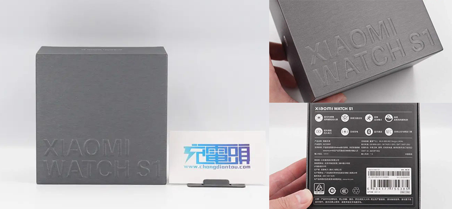 產(chǎn)品包裝盒趨于立方體,整體為灰色基調(diào),棱角分明,風(fēng)格簡(jiǎn)約。包裝盒頂部壓印產(chǎn)品名稱(chēng)——XIAOMI WATCH S1。包裝盒天地蓋設(shè)計(jì),底部貼有產(chǎn)品銘牌,印有產(chǎn)品8大賣(mài)點(diǎn)、參數(shù)以及商家信息等,生產(chǎn)商為龍旗電子(惠州)有限公司,產(chǎn)品還通過(guò)了CCC認(rèn)證。