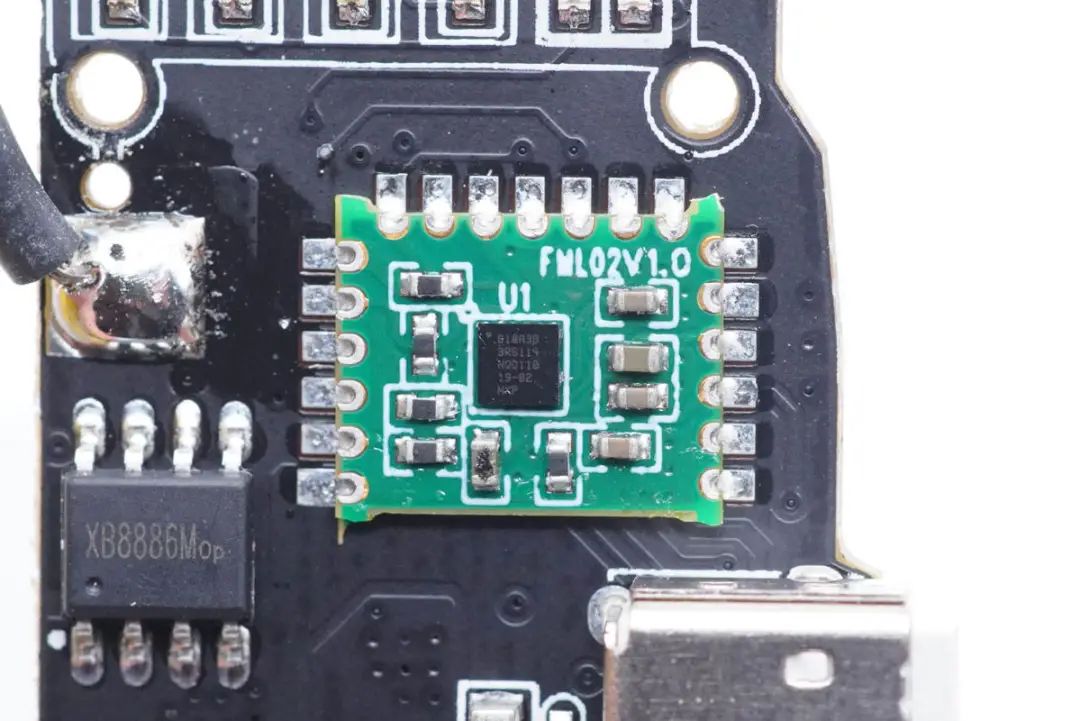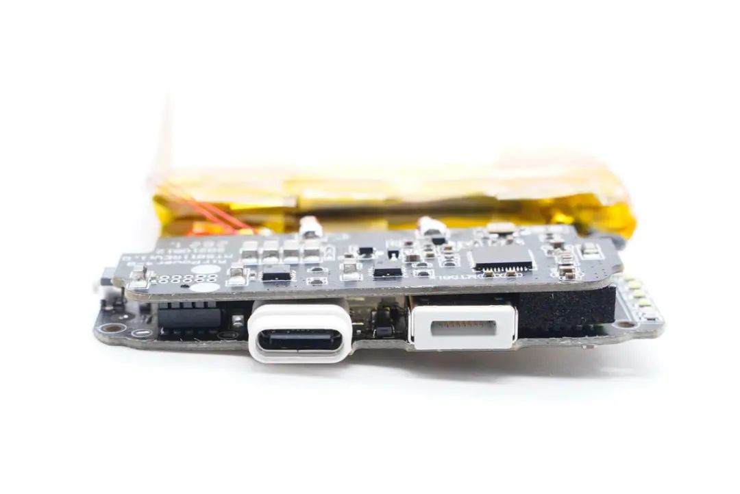 另一塊小板正面設有電感、接口保護MOS管、鋰電保護芯片等器件。