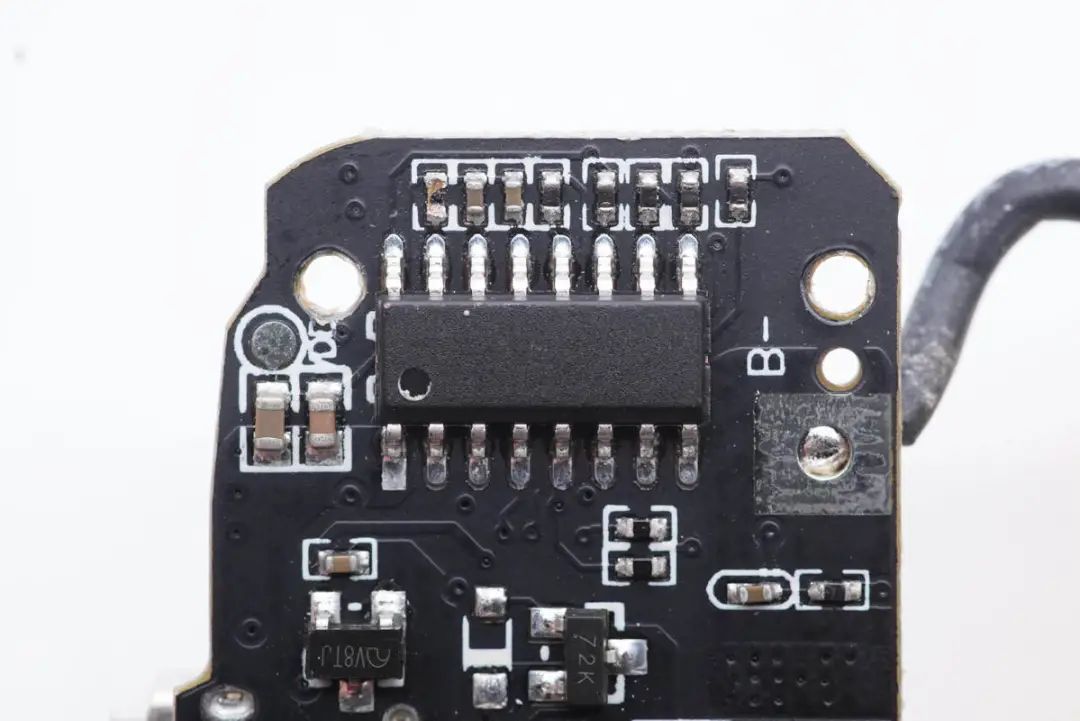 熱敏電阻特寫,用于電芯溫度監(jiān)控。