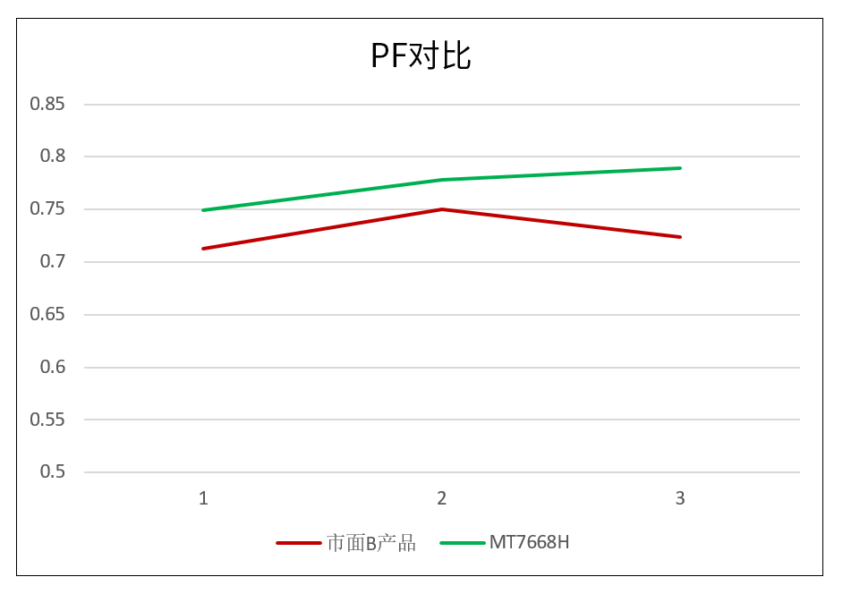 其中MT7668H是一款高PF值(PF>0.7)、高效率的無(wú)頻閃LED線性驅(qū)動(dòng)芯片,效率大于84%@AC230V,比市面B產(chǎn)品高4%以上。功耗的降低使MT7668H可以支持單面板PCB燈絲燈應(yīng)用,并且單面PCB板比市面B產(chǎn)品采用雙面PCB板成本節(jié)省0.1元(Size E27)。