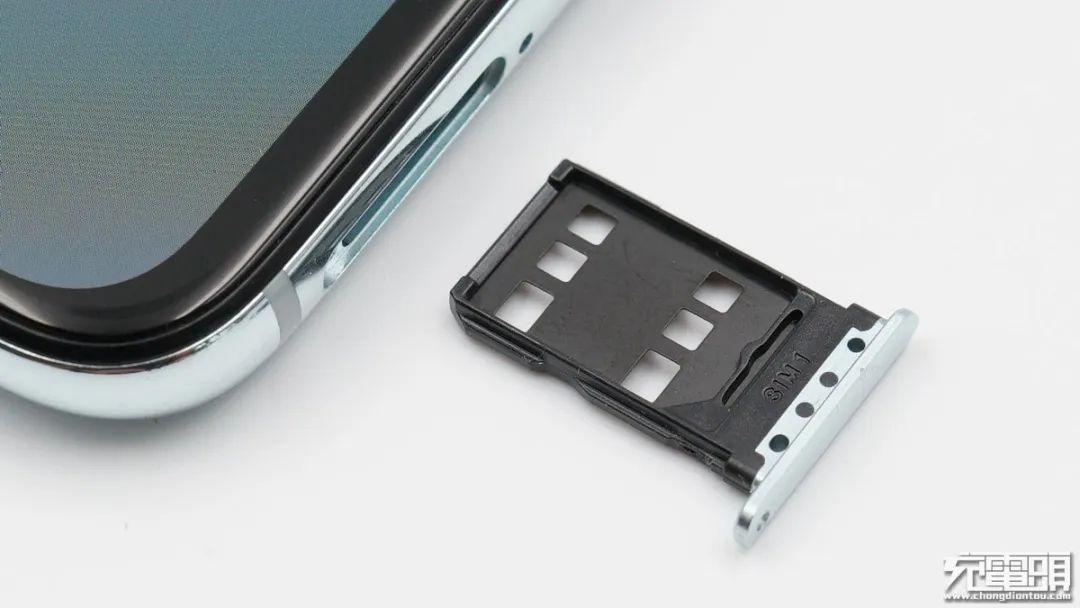 SIM卡座特寫,卡槽采用正背面設(shè)計,支持雙卡雙待的同時節(jié)省空間。