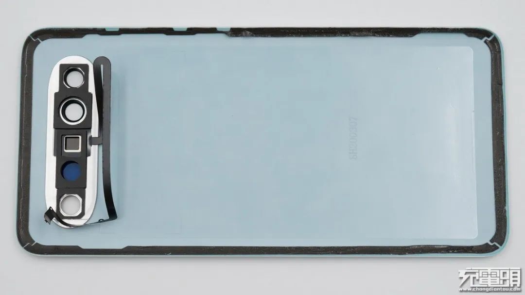 將手機后蓋拆開,環(huán)形閃光燈采用一根排線連接,后蓋邊緣采用雙面膠固定。