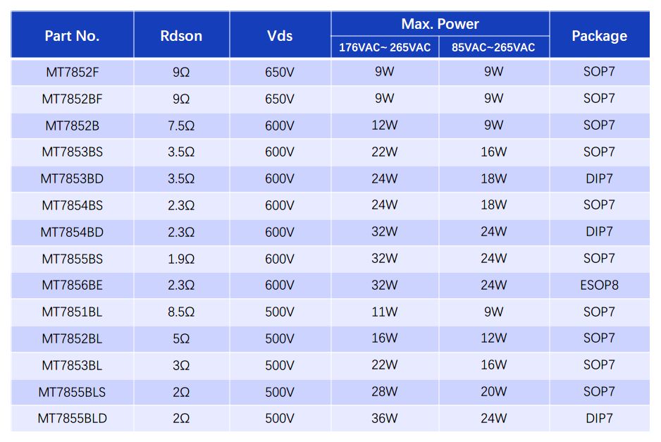 ■ 可以和老一代APF非隔離芯片MT7842B系列及同類競品系列進行直接替換,不需焊接COMP電容、RC補償,不需要重畫PCB。
