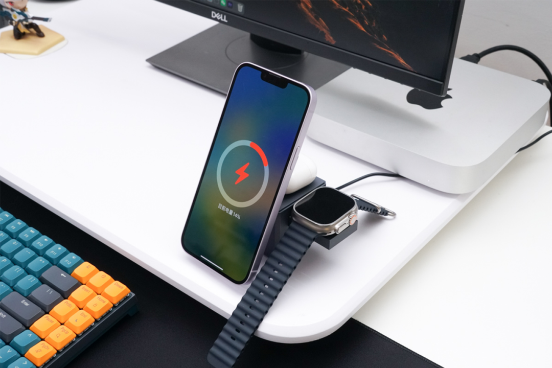 這款三合一無線充電器通過了蘋果MFW和MFM雙認(rèn)證,支持iPhone12-14系列15W 、Apple Watch及AirPods 5W無線快充。這對蘋果全家桶用戶來說,無疑是喜事一件,充電體驗得到顯著提升。