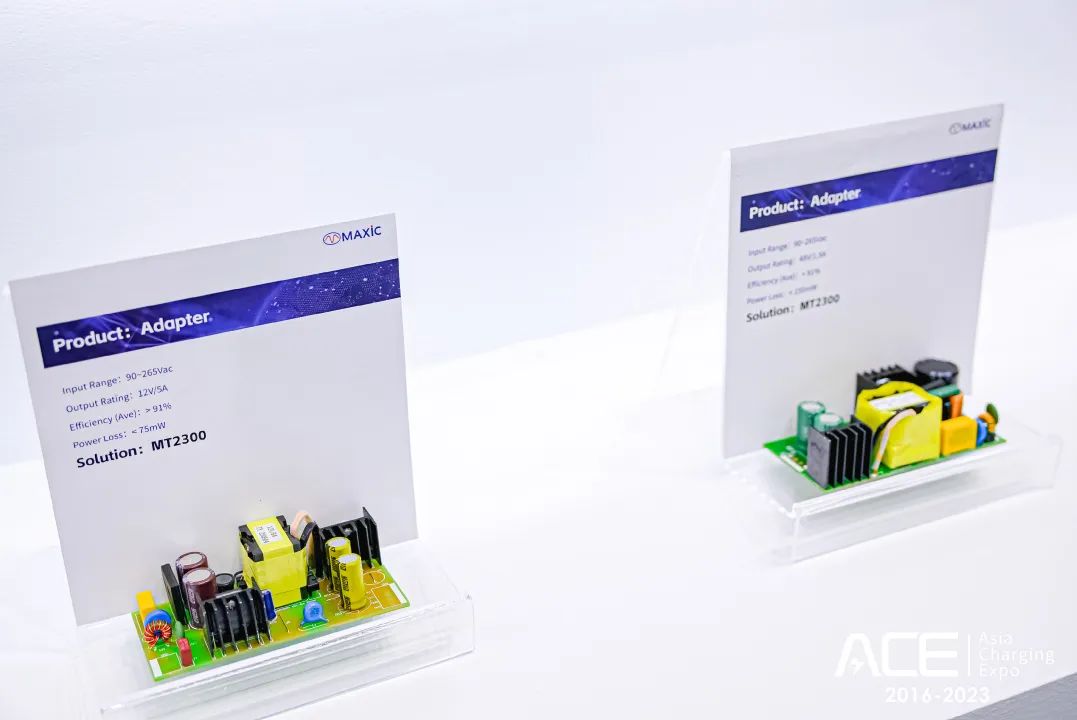 有線充電方面,重點(diǎn)展示了兩款65W PD 快充方案和三款48V/1.5A、12V/5A、20V/10A適配器方案,介紹了MT2300、MT2310等產(chǎn)品亮點(diǎn)和應(yīng)用領(lǐng)域。