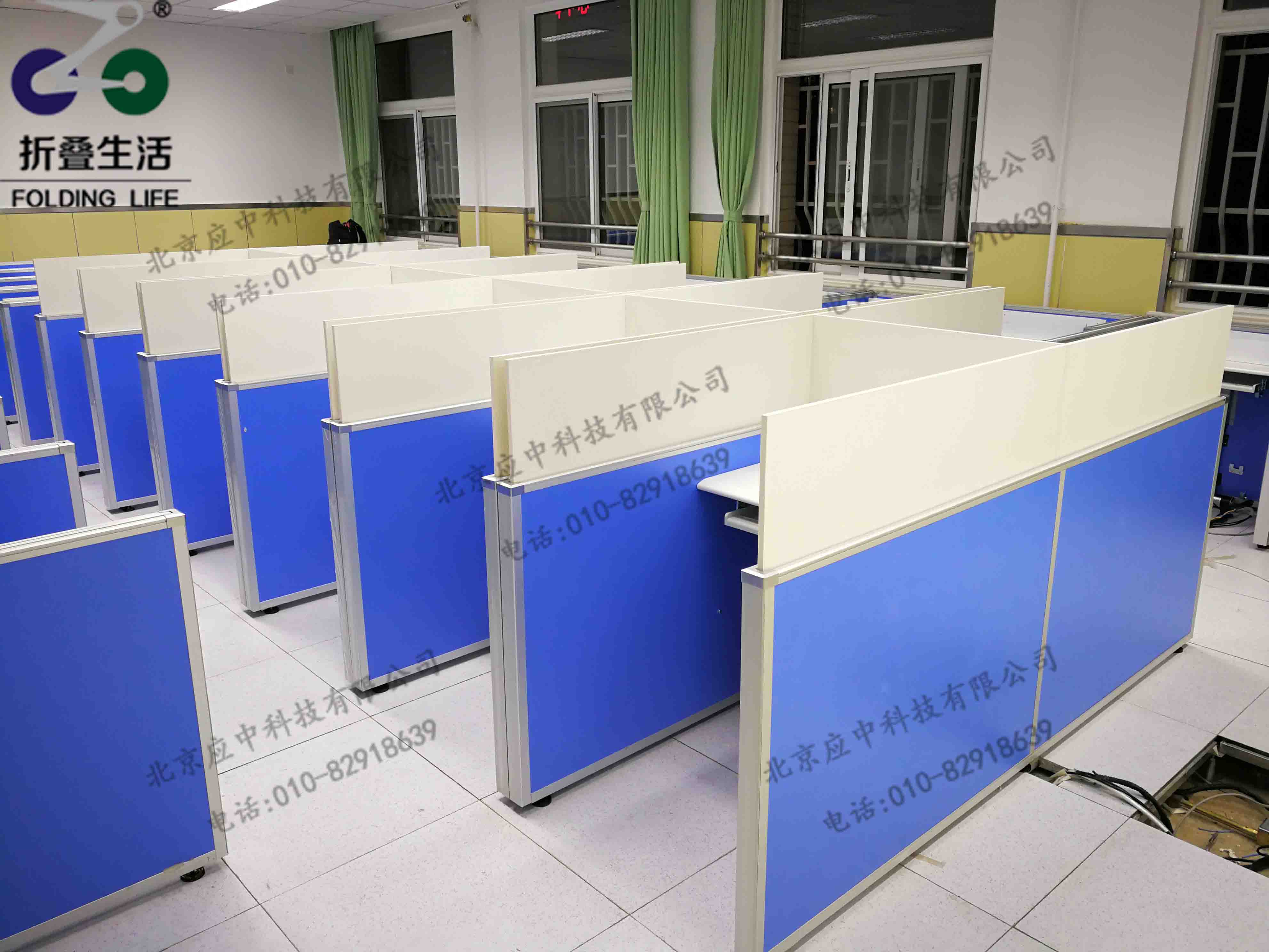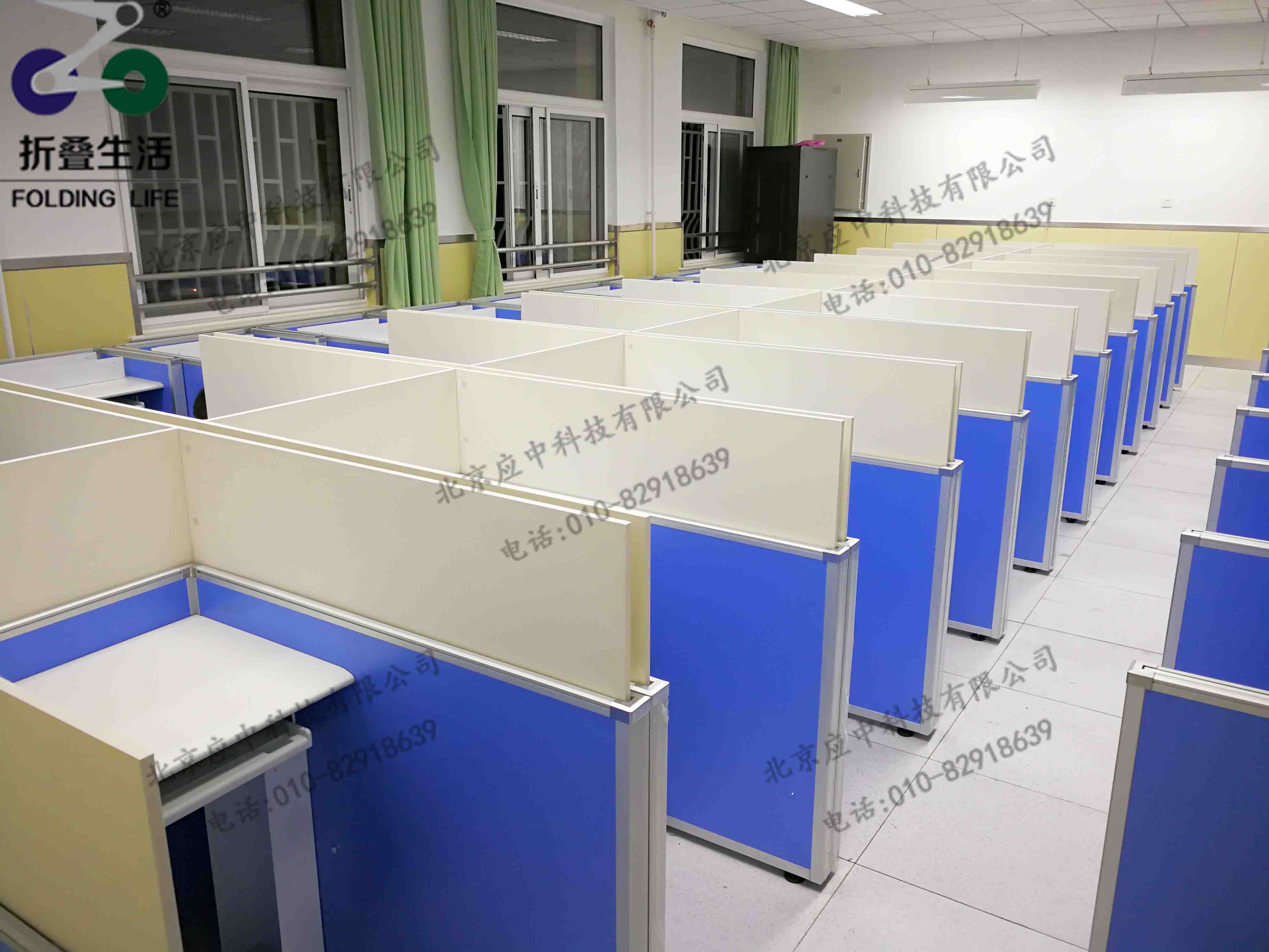 這張電腦桌屏風(fēng)下降時和普通的桌子相同,不會給使用者造成任何的影響;但是在屏風(fēng)升起時可以有效的將兩位使用者的視覺范圍給控制到電腦屏幕上,這樣就達(dá)到了互不干擾的效果.