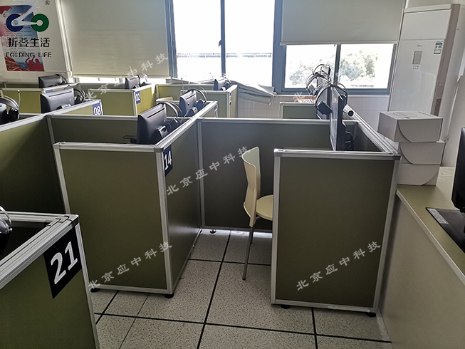 升降屏風(fēng)考試桌在產(chǎn)品設(shè)計(jì)風(fēng)格方面,屏風(fēng)升起來同桌或者相鄰考生之間看不到,保證了考試的公平性。它是現(xiàn)代英語聽說考試的重要組成部分,當(dāng)屏風(fēng)升起后,可當(dāng)作英語聽說考試標(biāo)準(zhǔn)化考場使用,當(dāng)屏風(fēng)降下后,可當(dāng)作多媒體培訓(xùn)教室使用的。實(shí)現(xiàn)了一室多用及考學(xué)合一的效果。