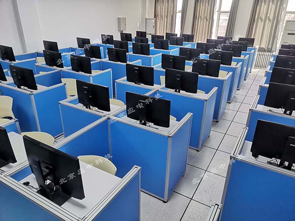 北京市昌平一中-英語(yǔ)聽(tīng)說(shuō)多功能教室建設(shè)采用產(chǎn)品為山字型雙人升降屏風(fēng)機(jī)考卡座。使用升降屏風(fēng)機(jī)考卡座可:●降低語(yǔ)音機(jī)考考場(chǎng)噪音5db以上 ●減少考場(chǎng)環(huán)境對(duì)考生注意力的干擾 ●半封閉空間可幫助考生集中注意力 ●嚴(yán)肅考場(chǎng)紀(jì)律,杜絕屏幕 窺 視