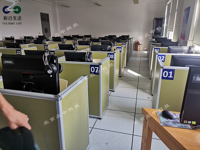 上海市羅店中學(xué)安裝兩間教室(96人位)屏風(fēng)升降電腦桌用于高考聽(tīng)力考試,考場(chǎng)機(jī)考卡座選用智能升降屏風(fēng)機(jī)考卡座,每張課桌三邊有可升降的屏風(fēng),考試時(shí),降屏風(fēng)升起,每名考生即擁有獨(dú)立隔間,既能降低噪音,又能規(guī)范考紀(jì)屏幕窺視,保證的公平性。平時(shí)上課時(shí),屏風(fēng)降下,和普通的多媒體教室無(wú)異,可實(shí)現(xiàn)真正意義上的一室多用。