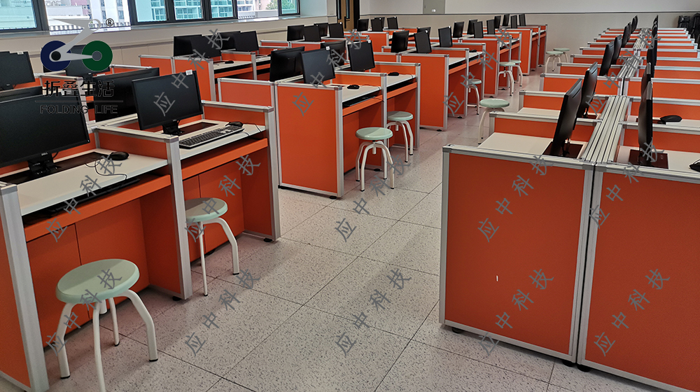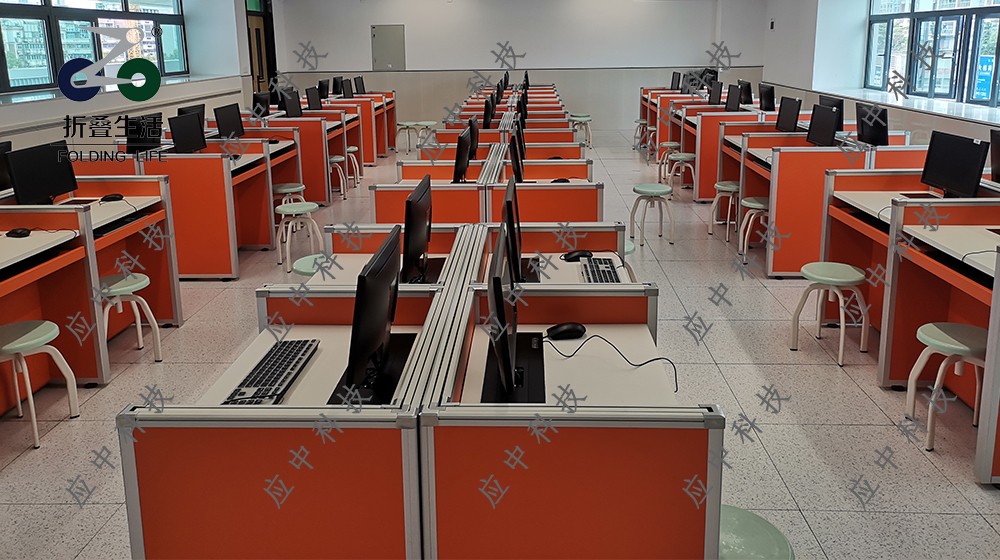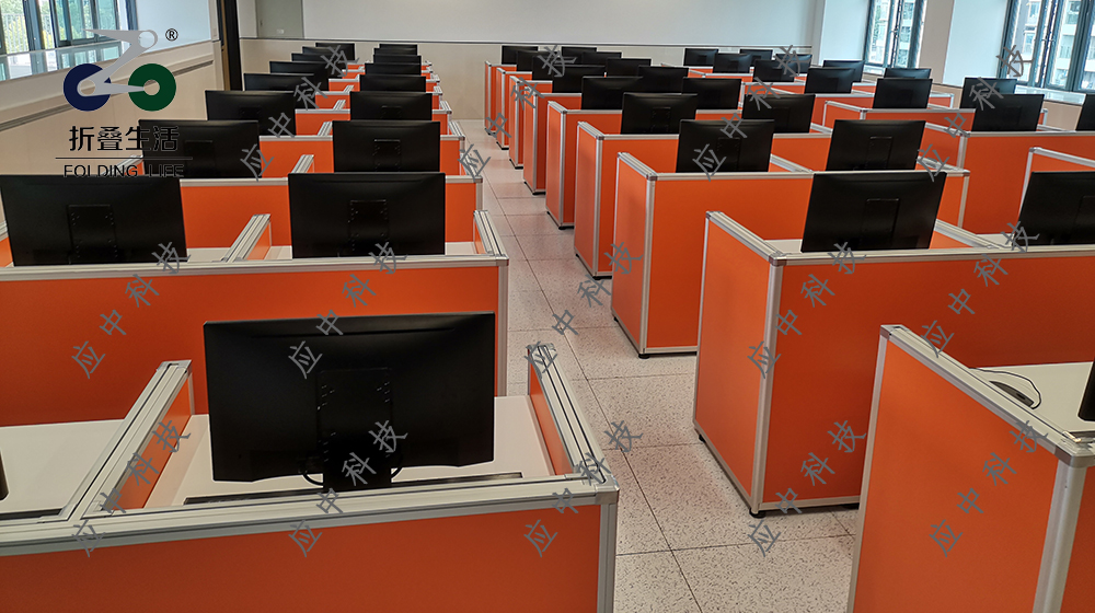 深圳麒麟中學(xué)安裝升降屏風(fēng)電腦桌-機考卡座