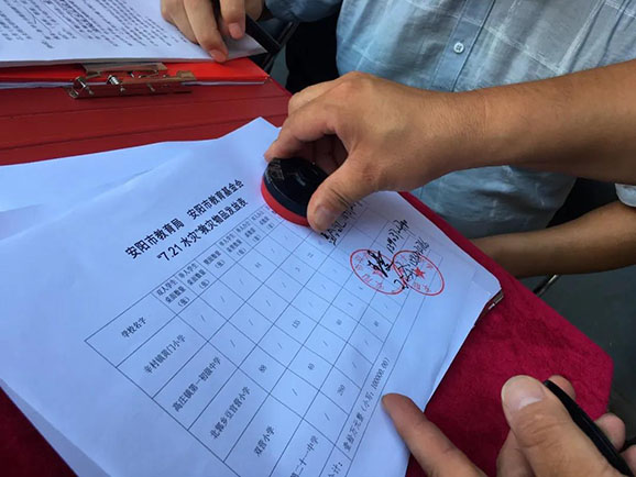 8月24日下午,安陽市教育局、安陽市教育基金會“7·21水災”救災物資發(fā)放儀式,在安陽縣胡官屯村舉行。北京應中科技有限公司為我市受災學校捐贈的價值10萬元的辦公、教學桌椅,當天分發(fā)到受災較重的安陽縣辛村鎮(zhèn)黃門小學、高莊鎮(zhèn)第一初級中學、北郭鄉(xiāng)豆官營小學和安陽市雙營小學、第二十一中學等五所學校。
