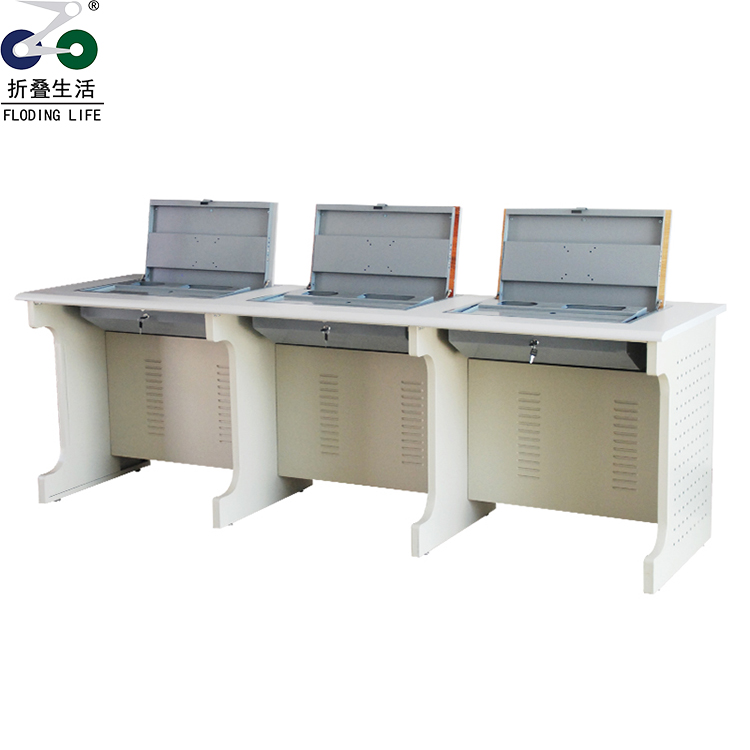 近兩年市場上出現(xiàn)了一種很受學(xué)校、企事業(yè)單位歡迎的能隱藏顯示器的新型翻轉(zhuǎn)電腦桌!我公司設(shè)計(jì)并制作的Q2型翻轉(zhuǎn)電腦桌適用于各種大型會(huì)議室、計(jì)算機(jī)教室、多媒體教室、多媒體會(huì)議室、多媒體電子教室、多媒體電教室、機(jī)房、培訓(xùn)中心、展廳內(nèi)及多功能會(huì)議廳等。若應(yīng)用于普通教室與計(jì)算機(jī)教室,模式相互切換快速,并不阻礙老師與學(xué)生之間目光交流。