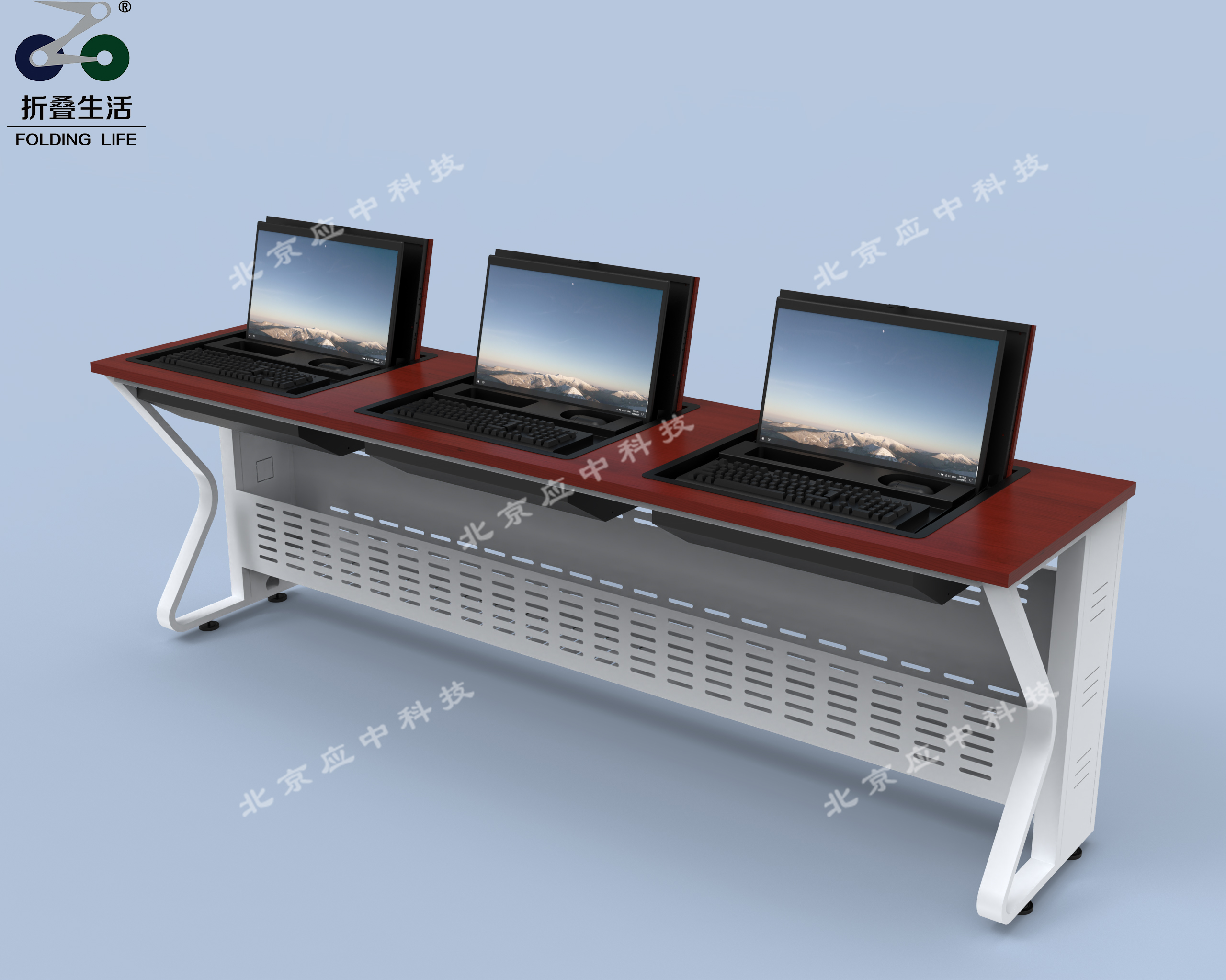 1:采用人體工程學(xué)原理設(shè)計(jì):產(chǎn)品能同時(shí)隱藏:顯示器+鍵盤+鼠標(biāo)。