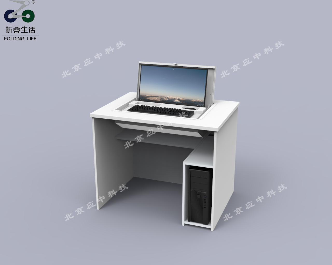 1:采用人體工程學(xué)原理設(shè)計:產(chǎn)品能同時隱藏:顯示器+鍵盤+鼠標(biāo)。
