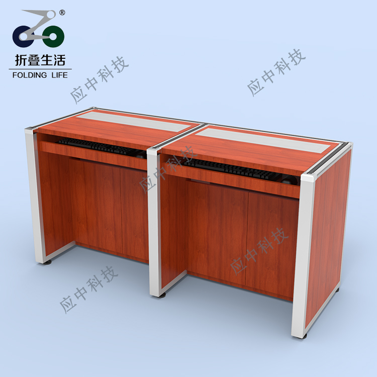 屏風(fēng)液晶屏升降電腦桌(深紅光面)下降后效果