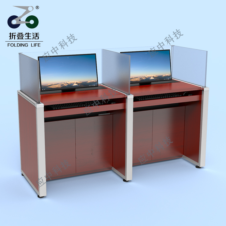 亞克力板屏風(fēng)液晶屏升降電腦桌(紅檀)